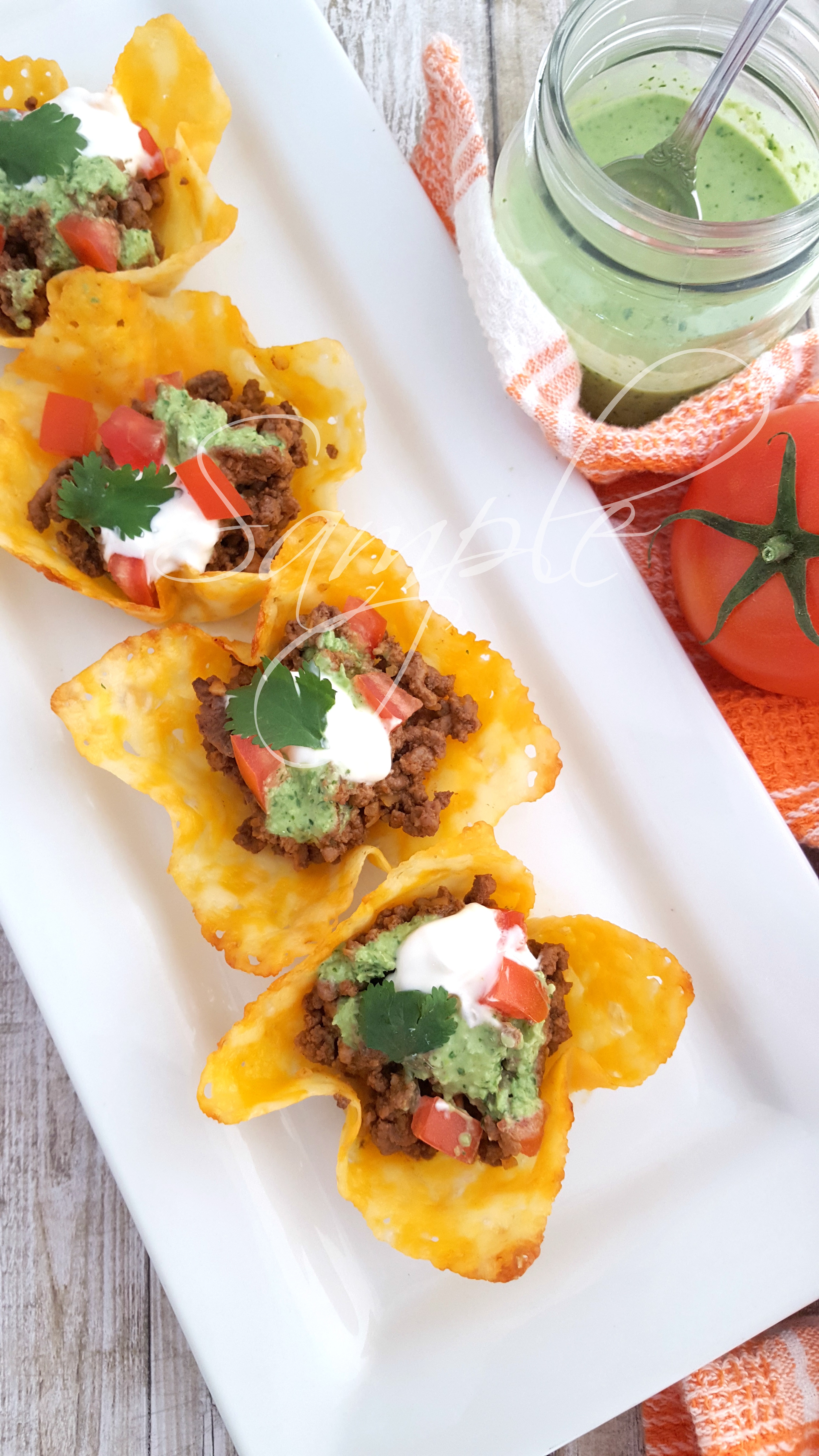 Keto Cheese Shell Taco Cups with Jalapeno Cilantro Sauce 3