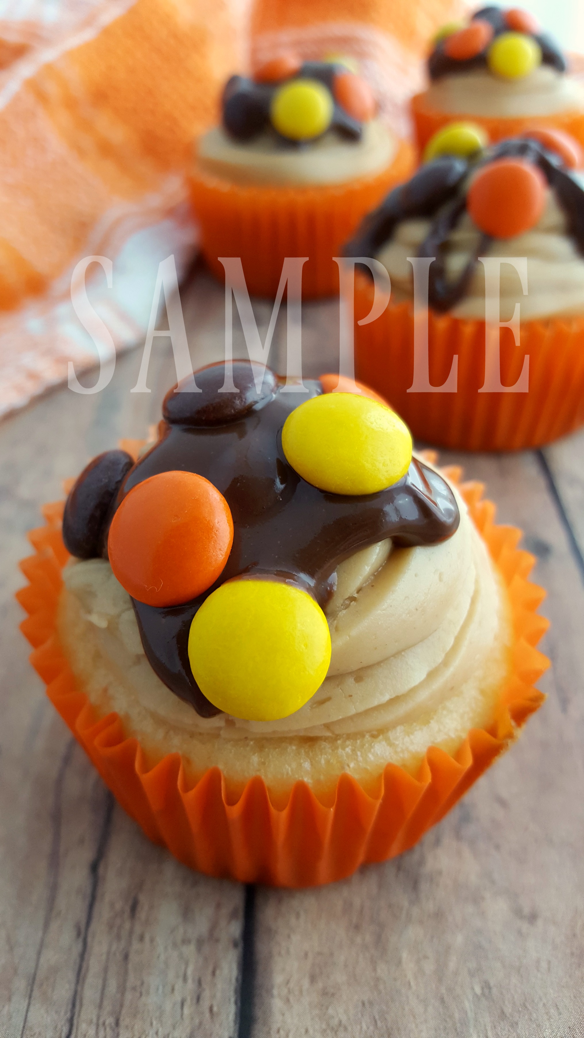 Reese’s Pieces Cupcakes w/PB Frosting + Chocolate PB Ganache 2 (Click to see image gallery)