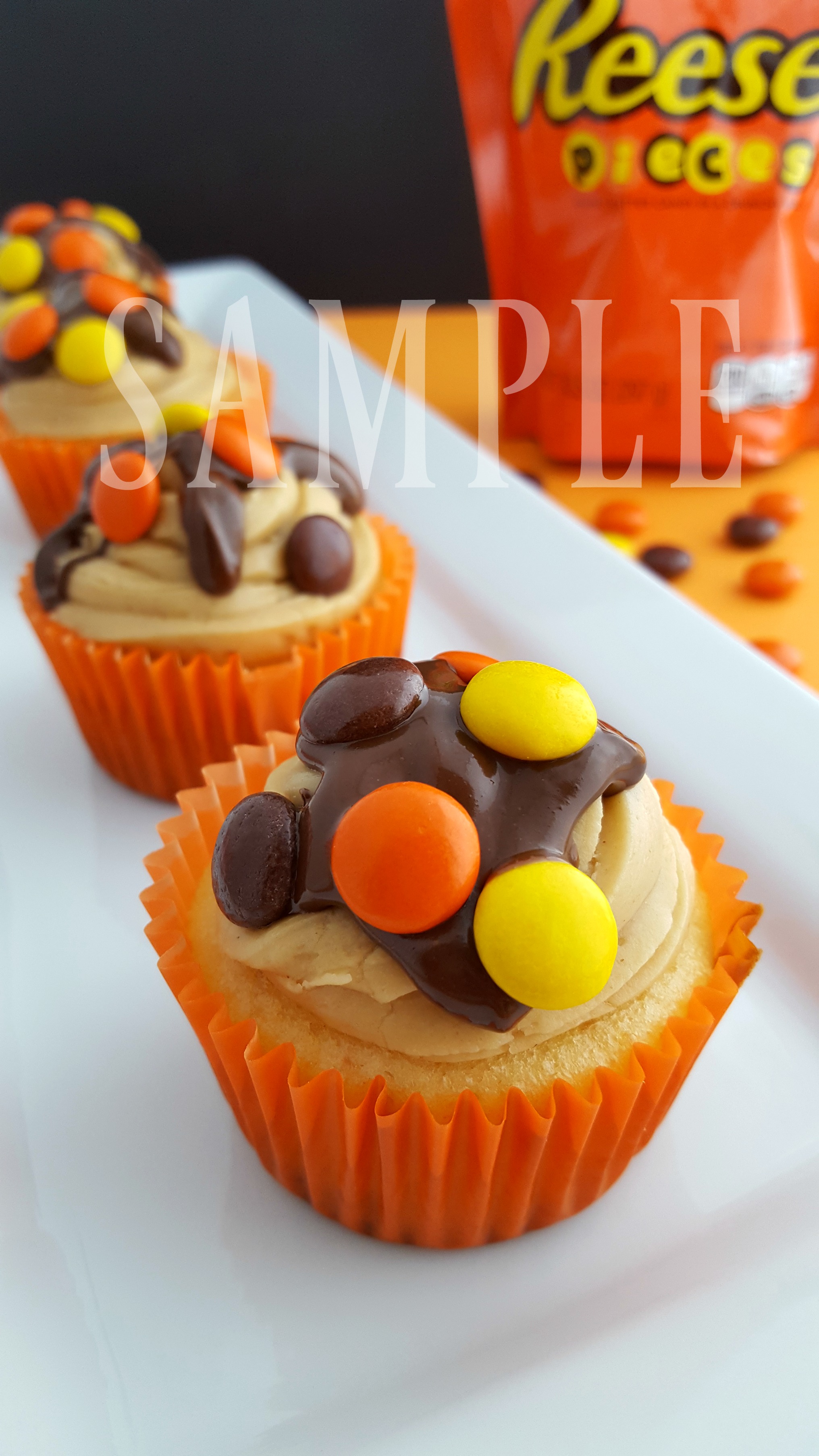 Reese’s Pieces Cupcakes w/PB Frosting + Chocolate PB Ganache 3 (Click to see image gallery)